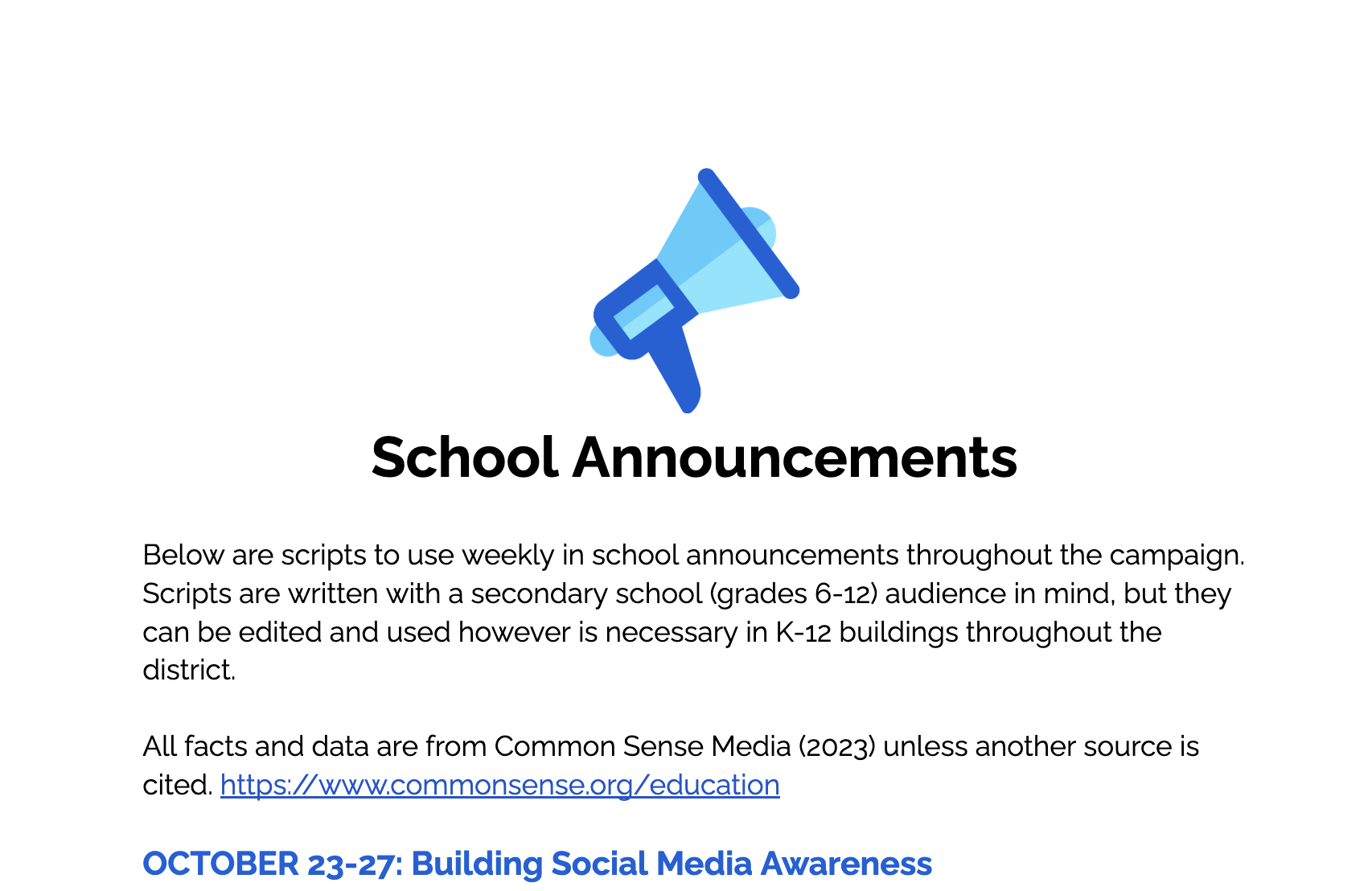 Free School Resource Downloads - No Social Media November